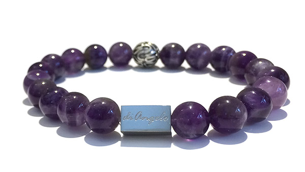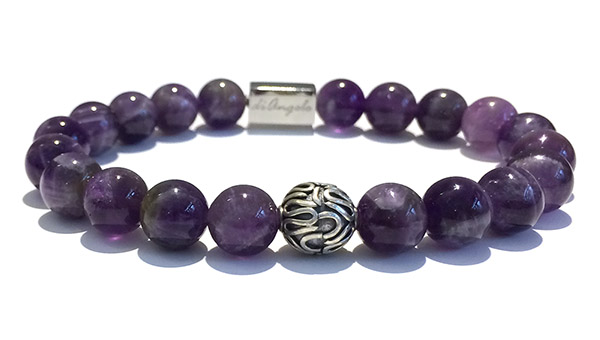 Natural Amethyst + 1 Handmade Bali Beads 925 Silver Bracelet beads with a diameter of 8 mm, combined with 1 scratch free stainless steel “diAngelo” logo anchor bead 11 x 6 mm.