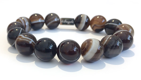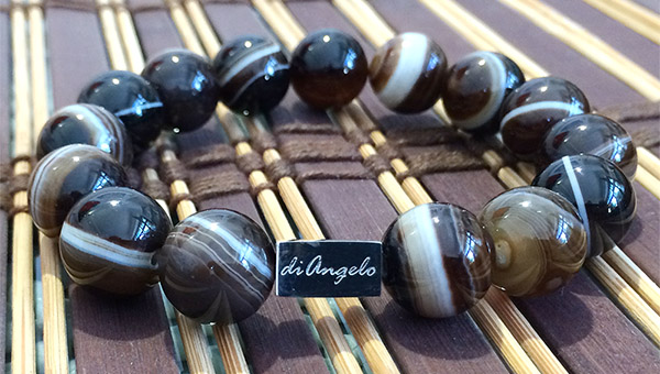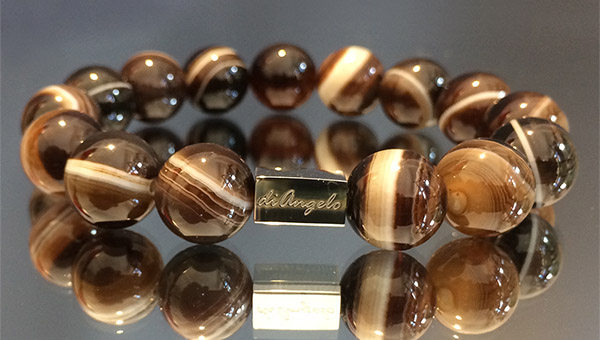 Natural Gemstone Coffee Striped Agate Bracelet, beads with a diameter of 12 mm, combined with 1 scratch free stainless steel “diAngelo” logo anchor bead 11 x 6 mm.