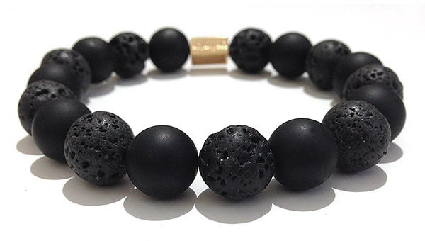 Natural Gemstone Black Obisidian + Lavastone Bracelets beads with a diameter of 12 mm, combined with 1 scratch free stainless steel “diAngelo” logo anchor bead 11 x 6 mm.
