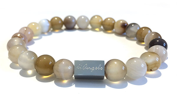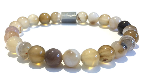 Botswana Agate Bracelet, beads with a diameter of 8 mm, combined with 1 scratch free stainless steel “diAngelo” logo anchor bead 11 x 6 mm.