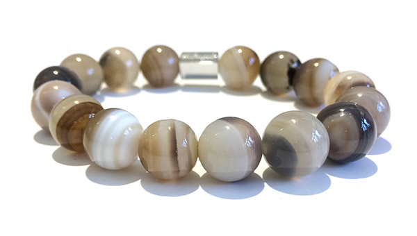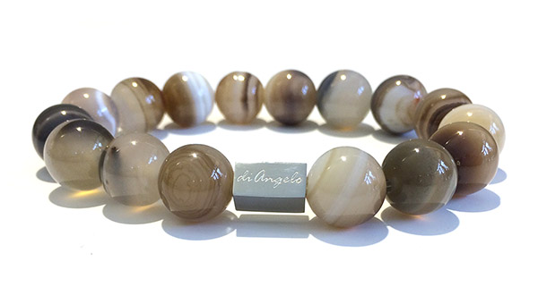 Botswana Agate Bracelet, beads with a diameter of 12 mm, combined with 1 scratch free stainless steel “diAngelo” logo anchor bead 11 x 6 mm.