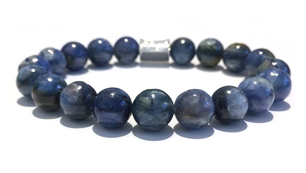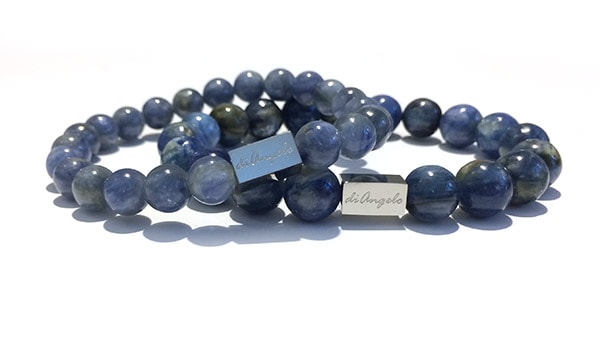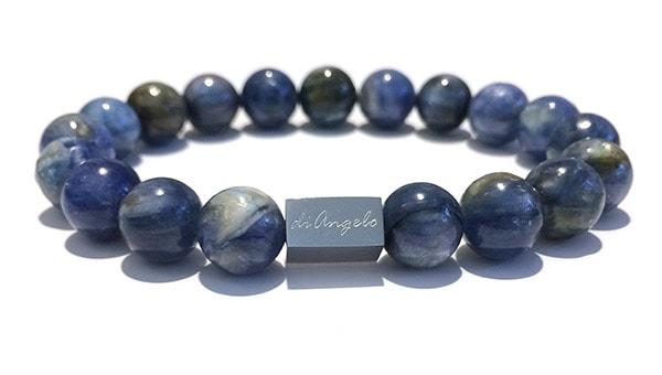 Natural Gemstone Kyanite Bracelet beads with a diameter of 10 mm, combined with 1 scratch free stainless steel “diAngelo” logo anchor bead 11 x 6 mm.