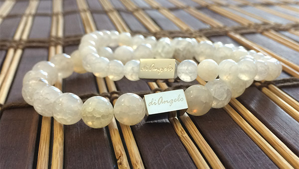 Natural Gemstone Moonstone Bracelets beads with a diameter of 6 and 8 mm, combined with 1 scratch free stainless steel “diAngelo” logo anchor bead 11 x 6 mm.