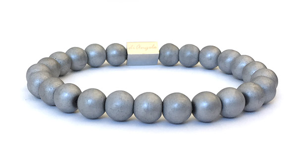 Natural Gemstone Matte Hematite Bracelet beads with a diameter of 8 mm, combined with 1 scratch free stainless steel “diAngelo” logo anchor bead 11 x 6 mm.