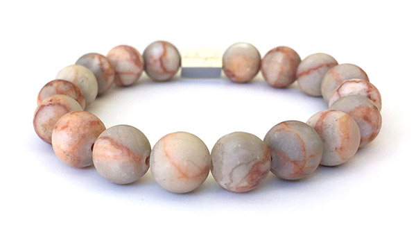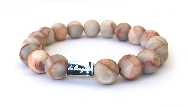 Natural Gemstone Red Grid Agate Matte Bracelet beads with a diameter of 10 mm, combined with 1 scratch free stainless steel “diAngelo” logo anchor bead 11 x 6 mm.