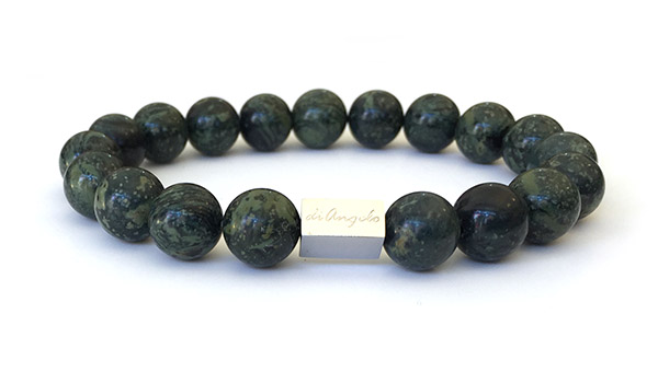 Natural Gemstone Rhyolite Bracelet, beads with a diameter of 10 mm, combined with 1 scratch free stainless steel “diAngelo” logo anchor bead 11 x 6 mm.