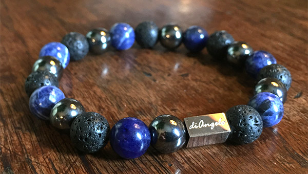 Natural Sodalite & Hematite & Lava StoneBracelet, beads with a diameter of 10 mm, combined with 1 scratch free stainless steel “diAngelo” logo anchor bead 11 x 6 mm.
