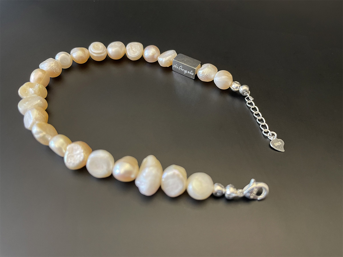 Natural Gemstone Sweet Water Pearl Bracelet beads with 8-9 mm diameter, combined with 1 scratch free stainless steel “diAngelo” logo anchor bead 11 x 6 mm.