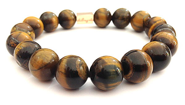 Natural Gemstone Tiger’s Eye Bracelet beads with a diameter of 12 mm, combined with 1 scratch free stainless steel “diAngelo” logo anchor bead 11 x 6 mm.